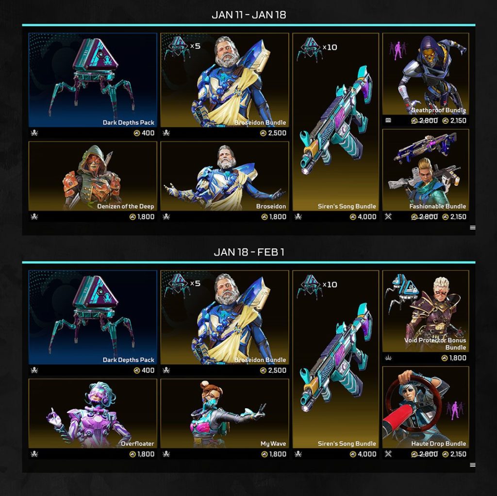 そして、課金アイテム「暗き深淵パック」も追加され、レジェンドと武器の特別なスキンが入手できます。そして、イベント期間中は、「暗き深淵パック」に収録されているスキンは、通常のAPEXパックからも入手可能になる。