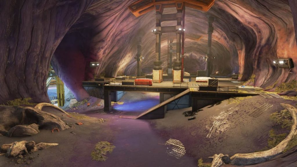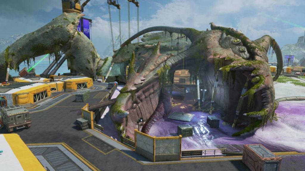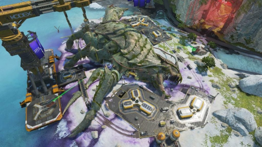この探索ポイントはノースパッド、チェックポイント、ザ・ミルの3つのローテーションを結び付けるハイティアアイテム地点です。浮き船上の大型クレーンも追加されてます。怪獣の死骸の上は、上ることができ、パスファインダー、ホライゾン、アッシュ、オクタンなどの能力で怪獣の高所をとることができそうです。