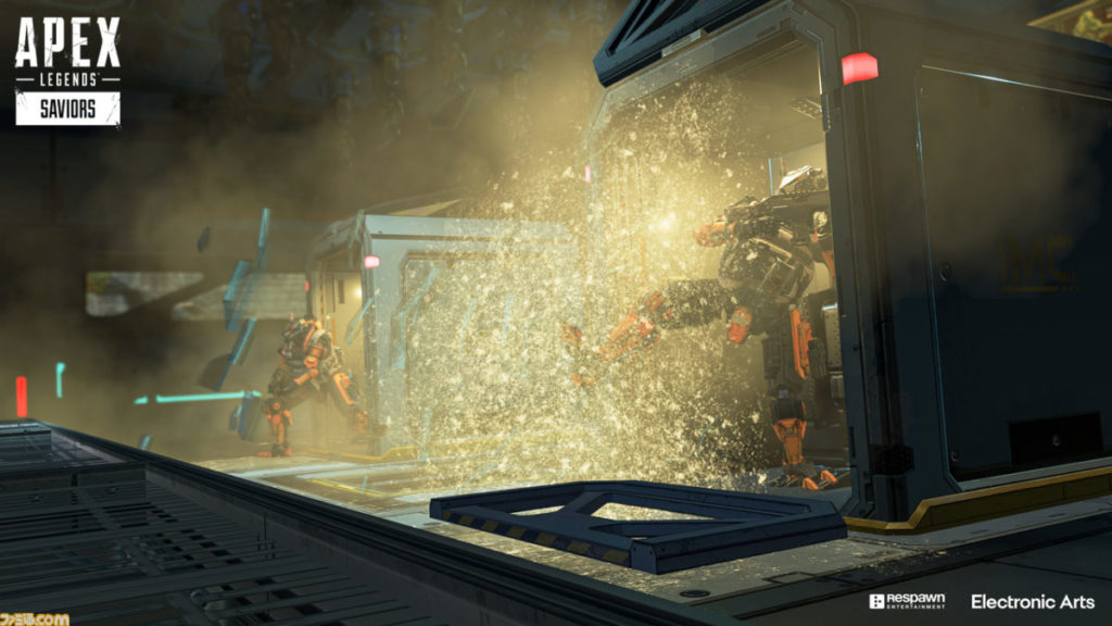 「IMC武器庫」では、武器庫内のボタンを押すと、武器庫内に閉じ込められスペクター部隊と先頭に入ります。60秒間生き残れば、装備中のロードアウトをアップグレードできるアイテムを入手できます。